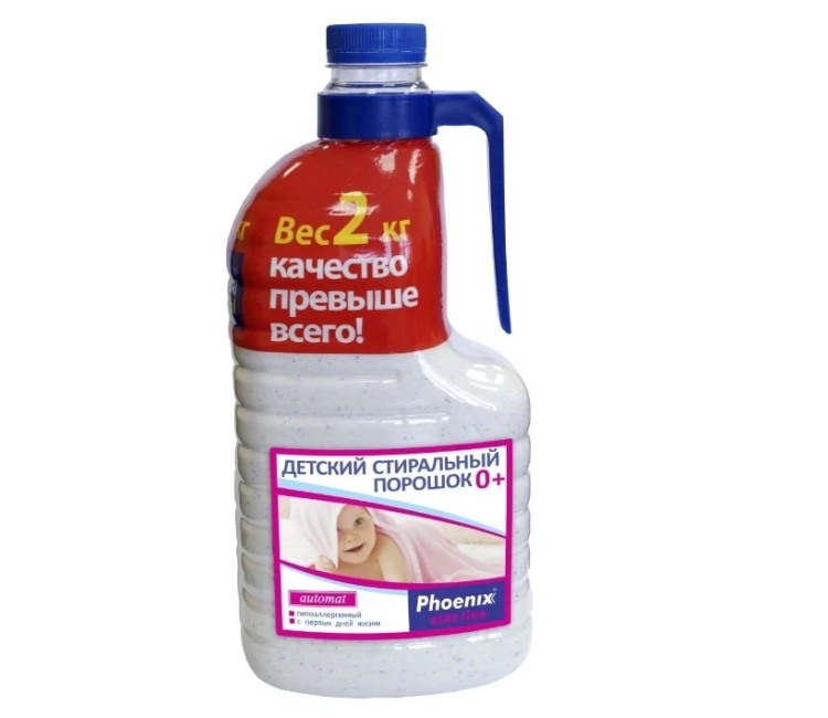 La línea Phoenix de detergentes para ropa está representada por detergentes en polvo y gel de alta concentración. El fabricante sugiere usar una composición líquida para lavar. cosas de niños.